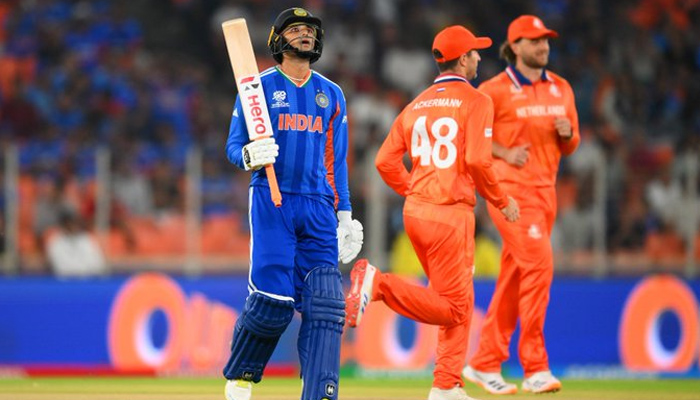 Sharma was dismissed for zero in the very first over by Netherlands pacer Dutt, completing a hat-trick of ducks in the tournament. Earlier in the competition, he had also been dismissed without scoring against the United States and arch-rivals Pakistan.