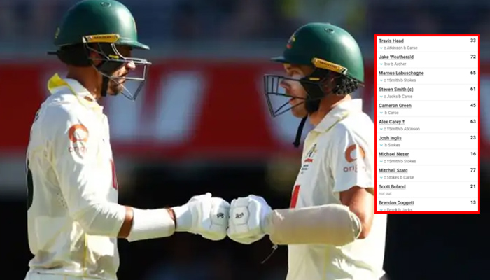 Australian batters achieved a unique feat in this innings — all 11 batters reached double figures, marking the first time in Ashes history that this has happened.