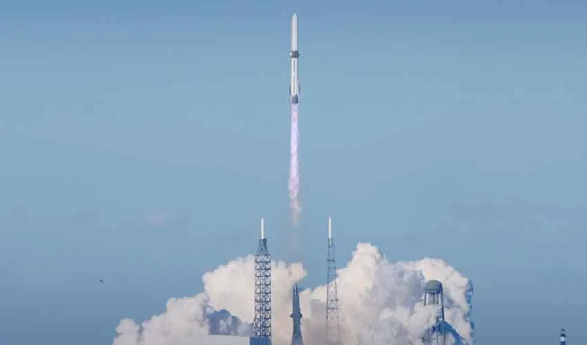 A live Blue Origin webcast showed the rocket ascending from its launch tower through clear afternoon skies in a thunder of flames and billowing clouds of vapour moments after its seven BE-4 liquid-fuelled engines roared to life. The launch followed several days of delays due to cloudy skies and a geomagnetic storm.