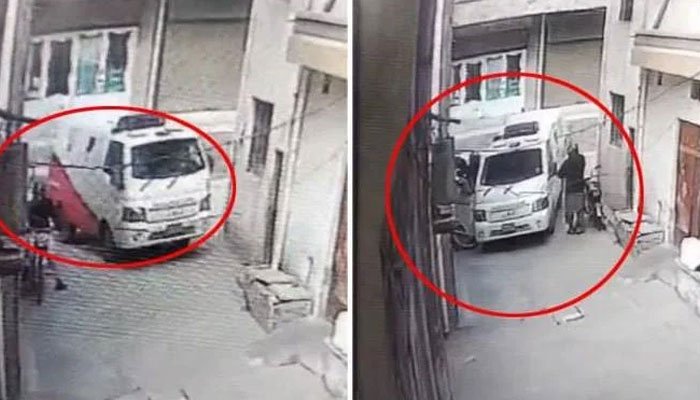 As per the CCTV footage armed robbers on motorcycles looting a private bank’s cash van in the Hashtnagri area of Peshawar.
