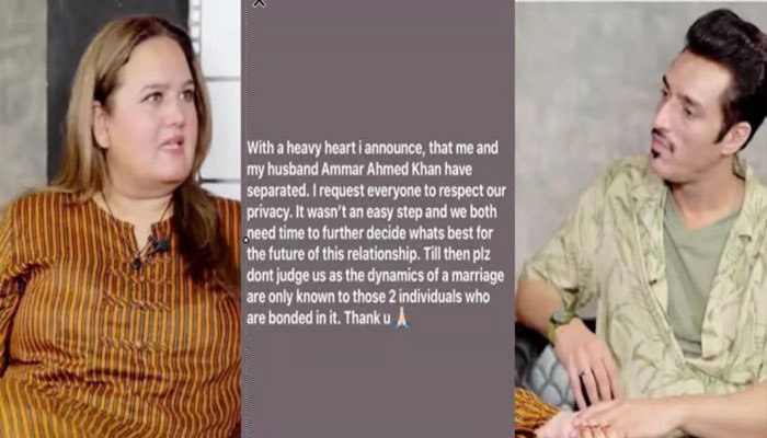 “With a heavy heart, I announce that my husband Ammar Ahmed Khan and I have separated. I request everyone to respect our privacy. It wasn’t an easy step, and we both need time to further decide what’s best for the future of this relationship. Till then, please don’t judge us, as the dynamics of a marriage are only known to the two individuals bonded in it.”