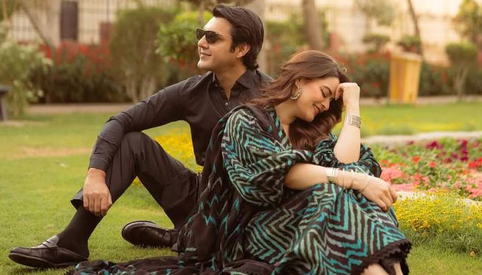 Adding a romantic element, Minal’s husband Ahsan Mohsin Ikram also appeared in the shoot. Set against a lush garden backdrop with soft natural light, the visuals enhanced the collection’s graceful and refined aesthetic.