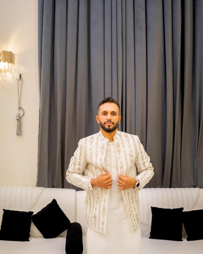 Muhammad Haris has recently embarked on a new chapter in his life. The cricket star recently celebrated his Nikkah in a private ceremony, surrounded by close family and friends. Dressed in a classic white outfit, Haris looked dashing on his special day. Here are a few photos from his Nikkah: