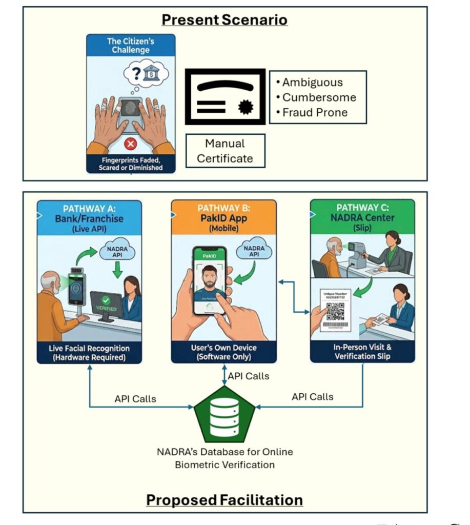 Islamabad (News Desk): The National Database and Registration Authority (NADRA) has introduced a new multi-biometric verification system to address challenges faced by citizens whose fingerprints have faded due to age or medical conditions. This initiative aims to facilitate access to banks, SIM card services, housing societies, property transfers, and other transactions requiring biometric verification.