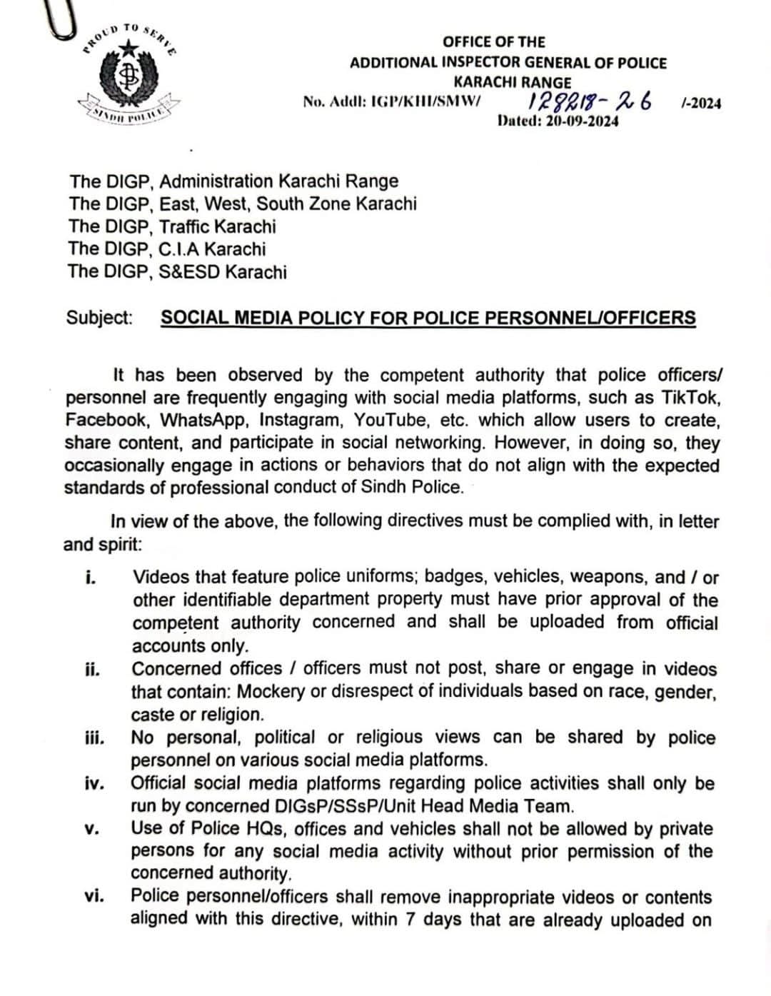 In recent days, officials on duty at various Karachi check posts have misused social media, sparking concerns. Memon’s instruction emphasizes avoiding rhetoric related to personal political and religious affiliations, ensuring officials maintain professionalism.