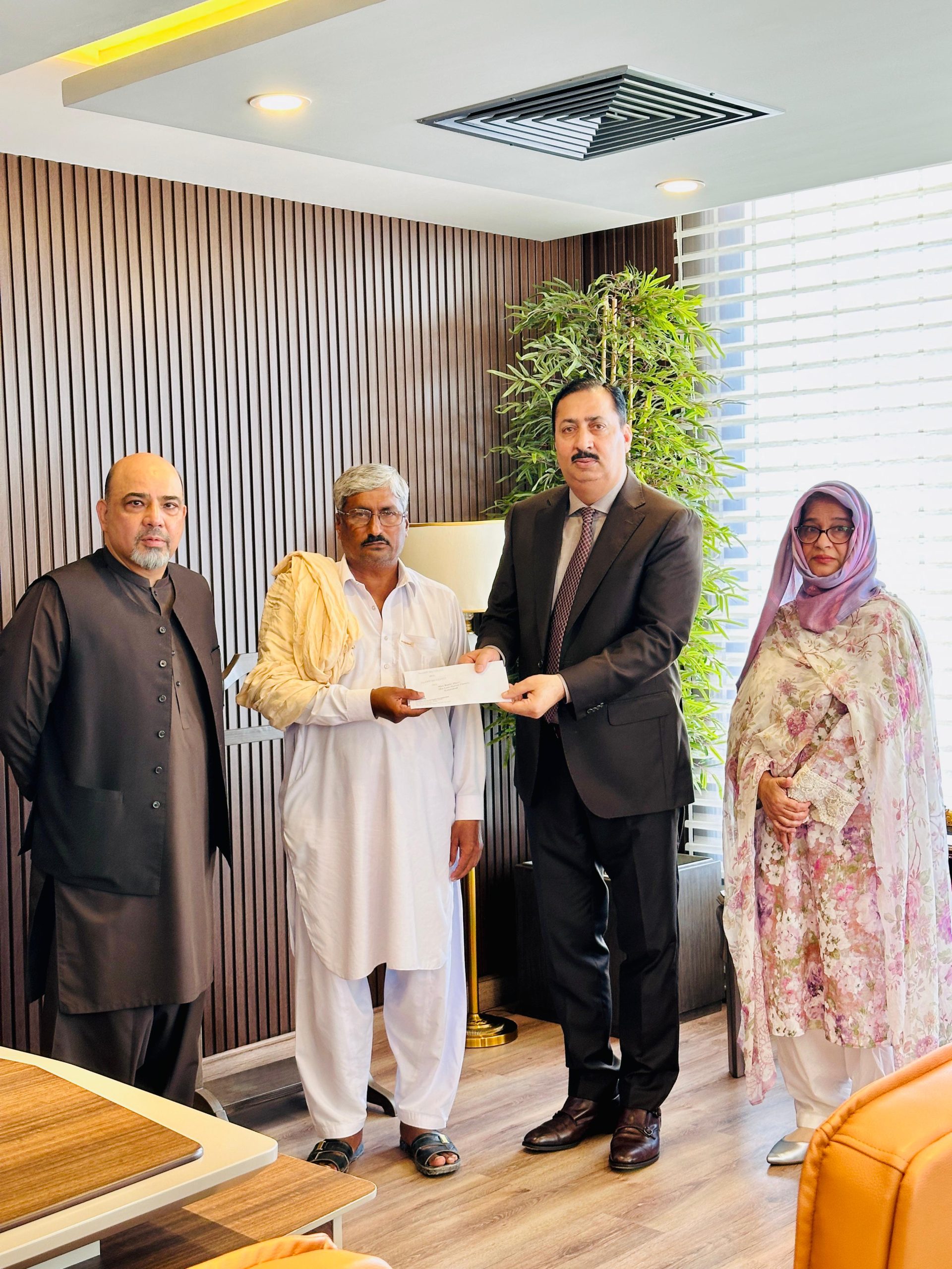 Islamabad-Mudassar Iqbal)_Syed Qamar Raza, Chairman of the Overseas Pakistanis Foundation (OPF), has reaffirmed his commitment to supporting overseas Pakistanis and their families. At a ceremony where he handed over a Rs. 15 million check to the father of late Farid, who died while working in Doha, Qatar, Raza emphasized the OPF’s dedication to providing relief and facilitating those affected [7).