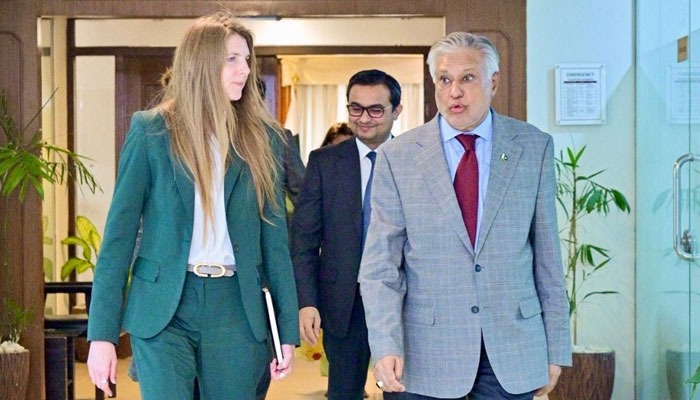ISLAMABAD: (Web Desk) – According to the Ministry of Foreign Affairs Pakistan, Deputy Prime Minister and Foreign Minister Ishaq Dar met with Jane Marriott in Islamabad on Tuesday.